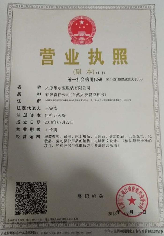 >> 資質證書 太原維爾亞服裝有限公司 - www.www.sjmww.com